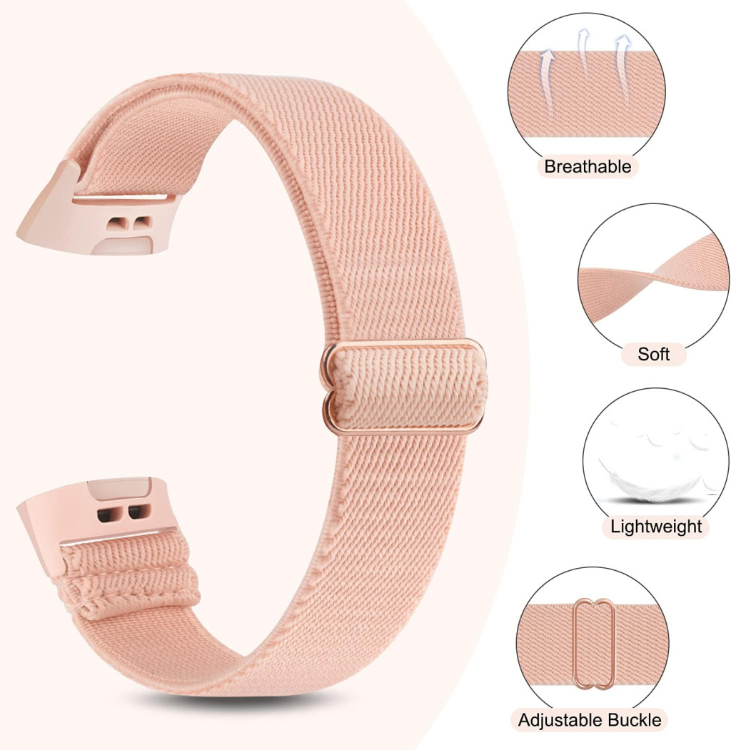 AK Elasztikus Nylon Szíj Fitbit Charge 3/4 Okoskarkötőhöz - Állítható, Könnyű, Kényelmes Sportpánt Férfiaknak és Nőknek, Rózsaszín