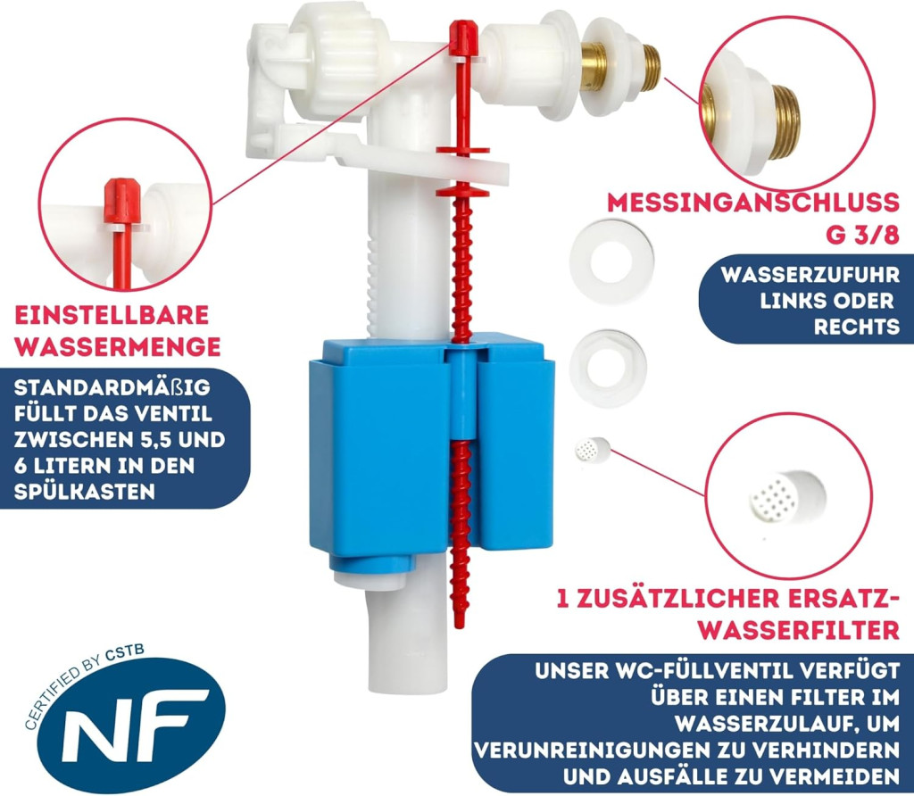 YOSSEE Univerzális Töltőszelep Műanyag és Kerámia Tartályokhoz Vízszűrővel