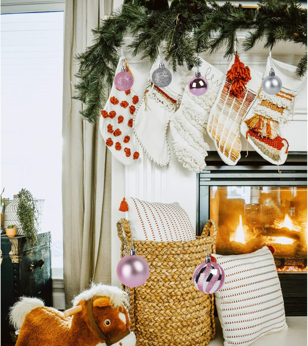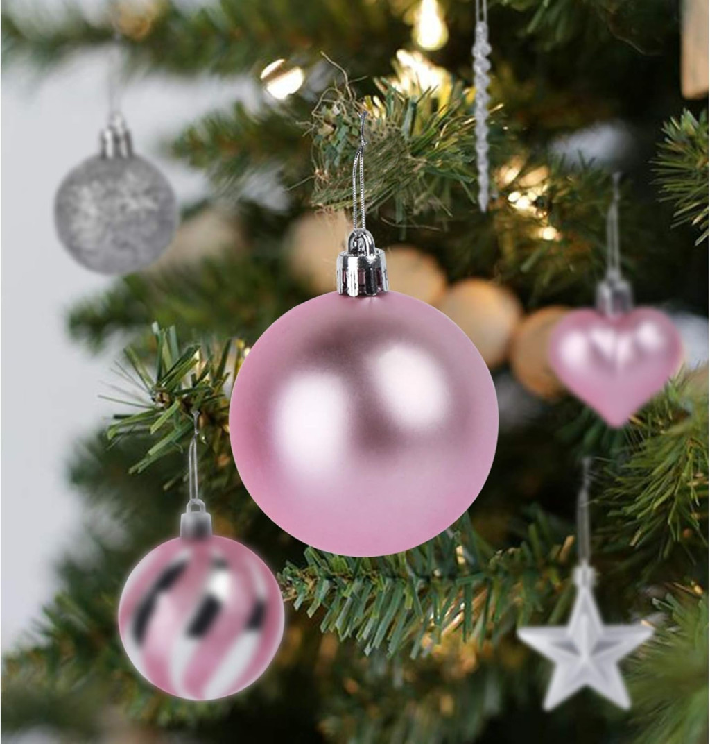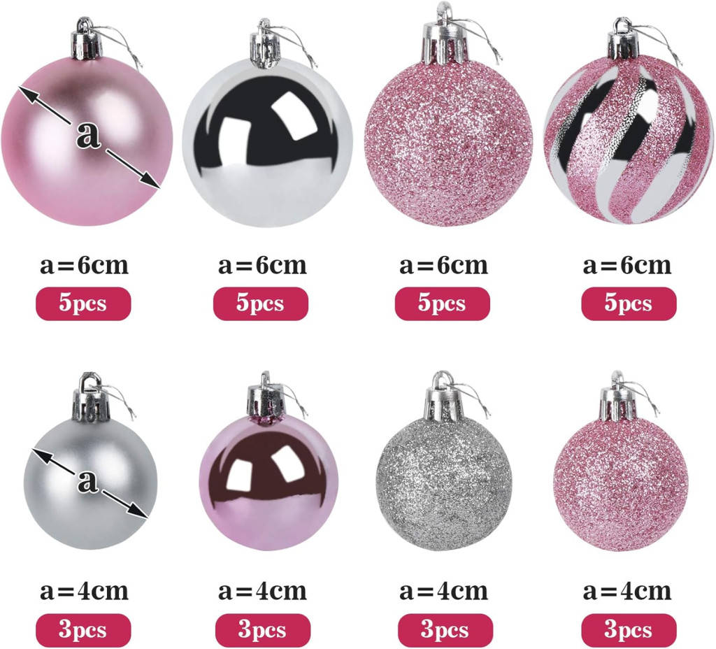A műanyag anyag nem csak biztonságosabb, hanem praktikusabb is az üveg alternatívánál. Nem kell aggódnia a törésveszély miatt, és a díszítések évről évre újra felhasználhatók. Az elegáns rózsaszín és ezüst szín kombináció modern és időtlen, amely bármilyen karácsonyi stílushoz illeszkedik.