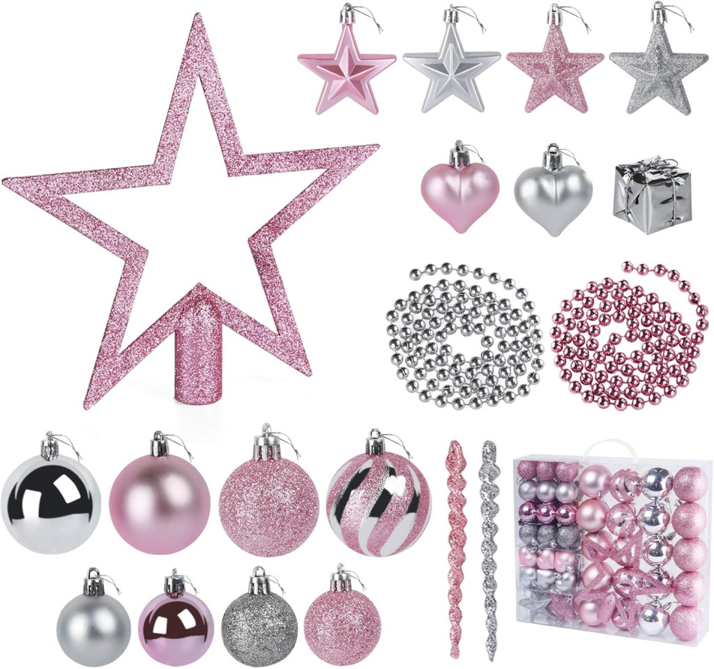 Agoer 60 Darabos Karácsonyi Gömb Szett - Rózsaszín és Ezüst Dekoráció