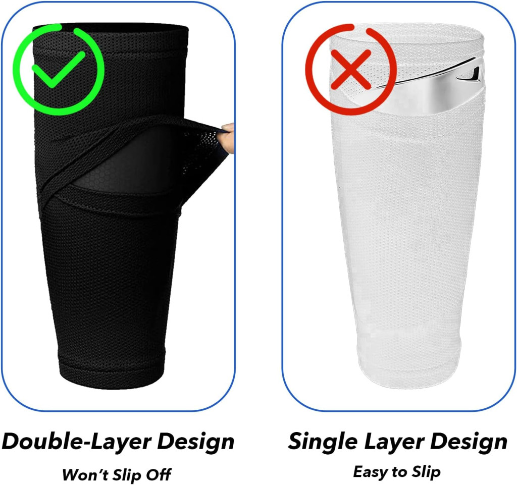 A dupla rétegű zseb design biztosítja, hogy a lábszárvédők biztonságosan a helyükön maradnak, míg a légáteresztő anyag garantálja, hogy a lábak szárazak és kényelmesek maradjanak. Az elastikus és puha anyag hosszú ideig megőrzi az alakját, így a zokni nem deformálódik vagy szakad meg könnyen.