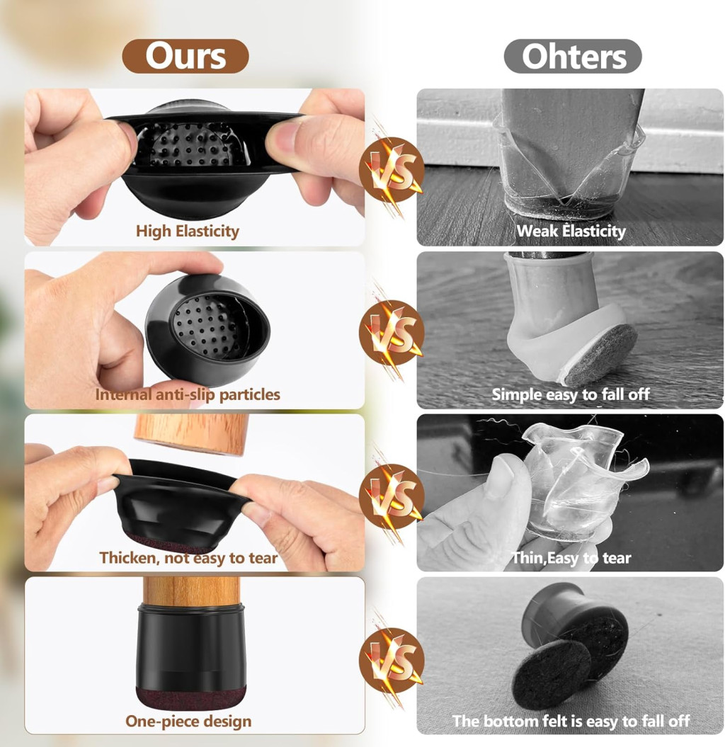 - Rugalmas szilikon: Kiváló nyújthatóság, amely különböző bútor lábakhoz alkalmazkodik