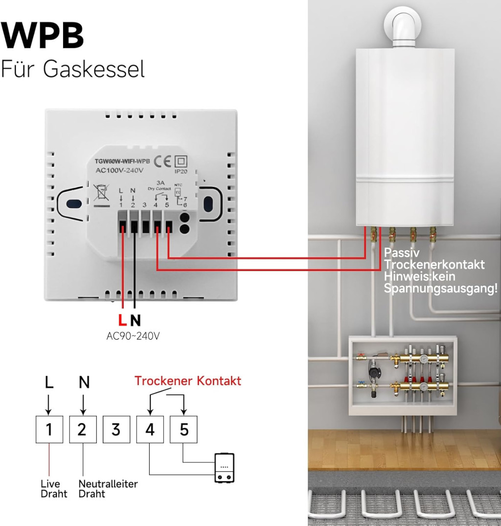 A Beok TGW60B-WIFI-WPB termosztát széles körű kompatibilitással rendelkezik, hogy zökkenőmentesen illeszkedjen otthona meglévő rendszereihez: