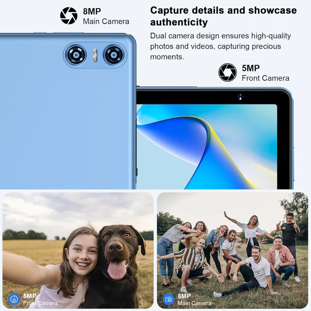 A 6000 mAh kapacitású akkumulátor akár 7 órás üzemidőt biztosít, így egész nap veled lehet. Az 5G WiFi és Bluetooth 5.0 kapcsolat gyors és stabil internetelérést garantál, míg az 5MP első és 8MP hátsó kamera segítségével megörökítheted a fontos pillanatokat vagy videóhívásokat bonyolíthatsz le.