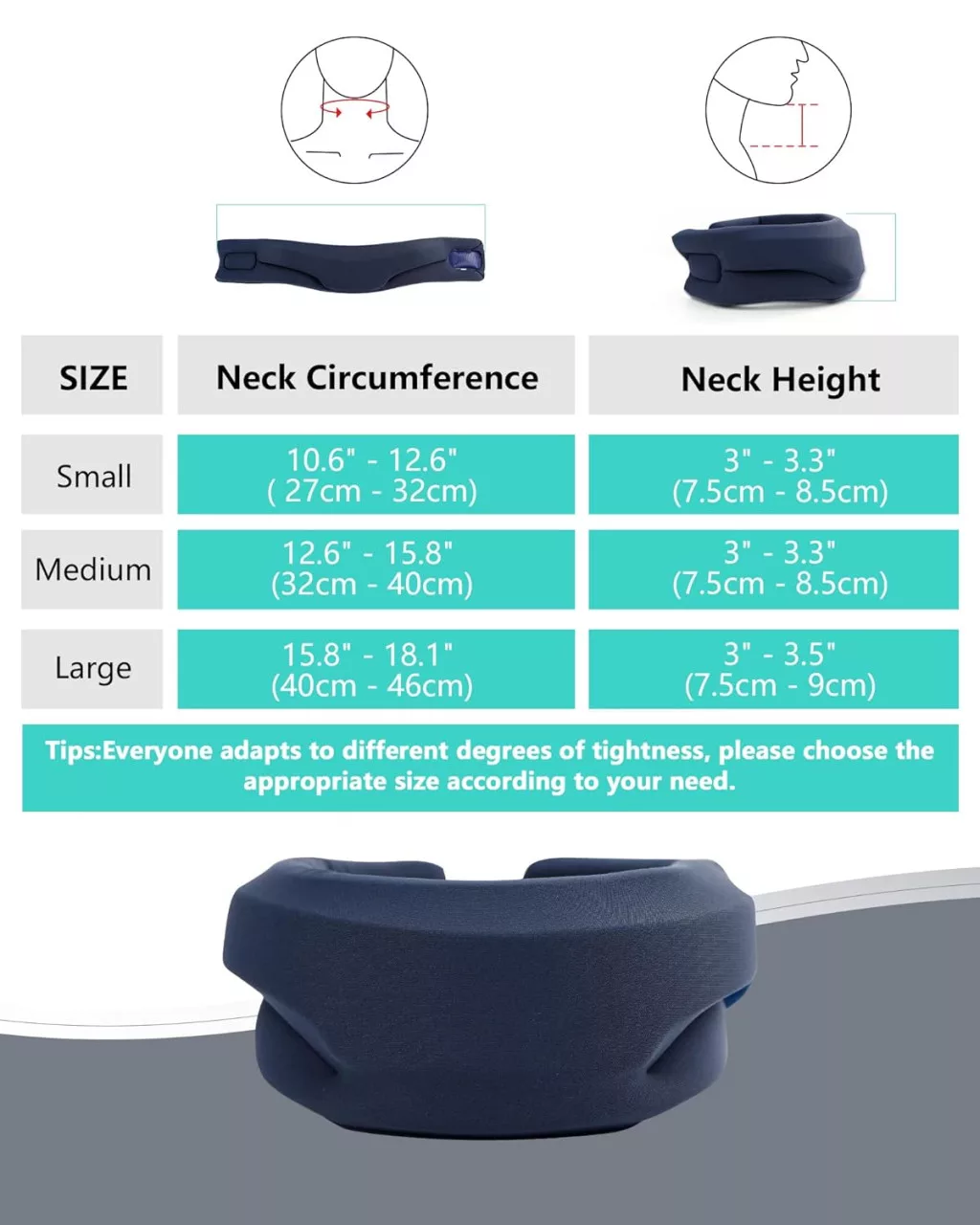 A BLABOK nyaktámasz három különböző méretben érhető el, hogy mindenki megtalálhassa a számára legmegfelelőbbet: