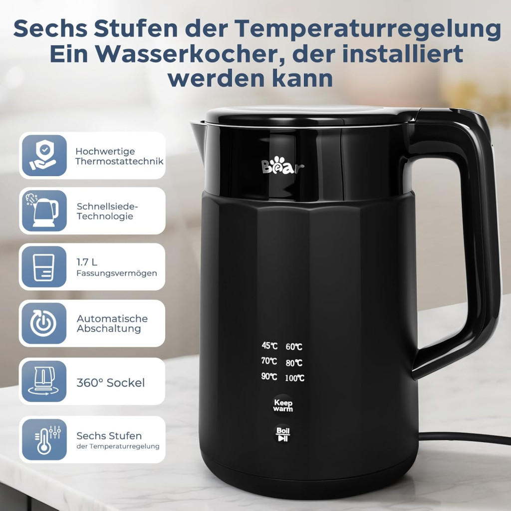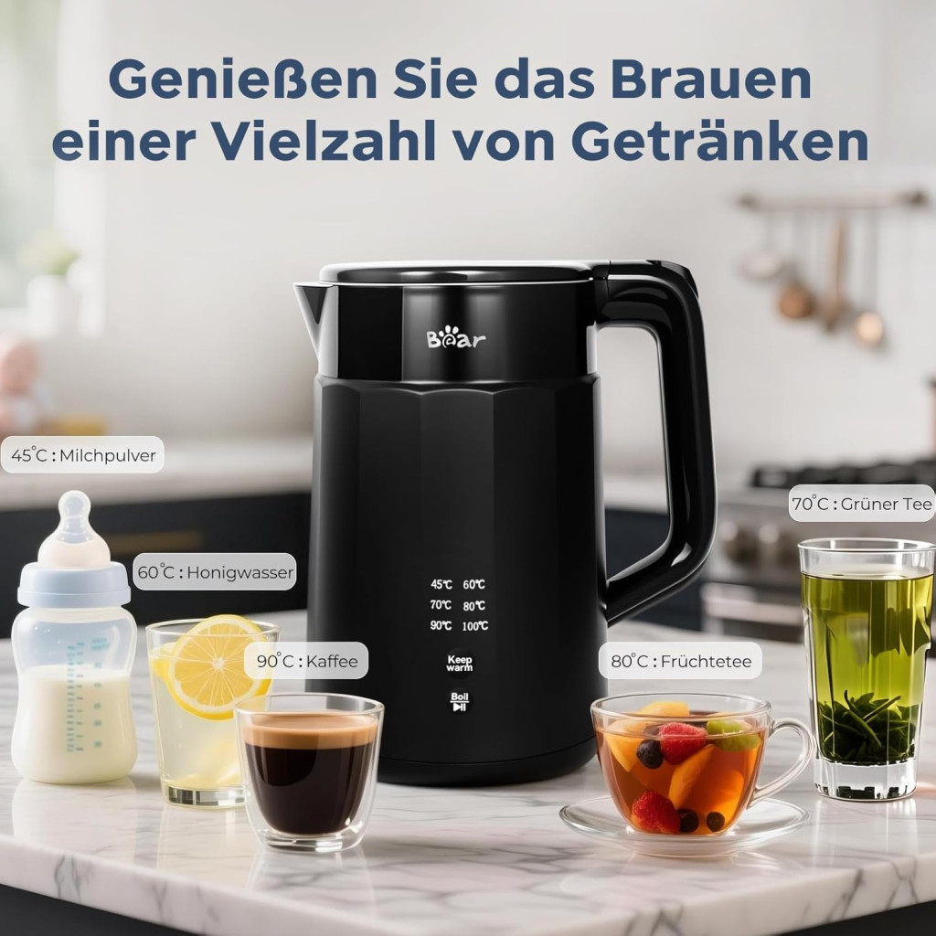 Bear Elektromos Vízforraló 1.7L - 6 Hőmérséklet-beállítás | Intelligens Forralás