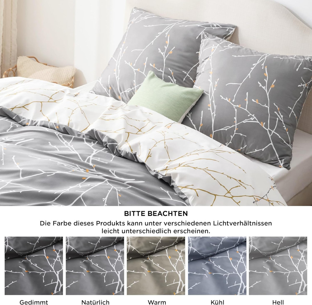 Bedsure Mikroszálas Ágyneműhuzat 135x200 cm - Szürke Ágak Mintával | Prémium Ágynemű