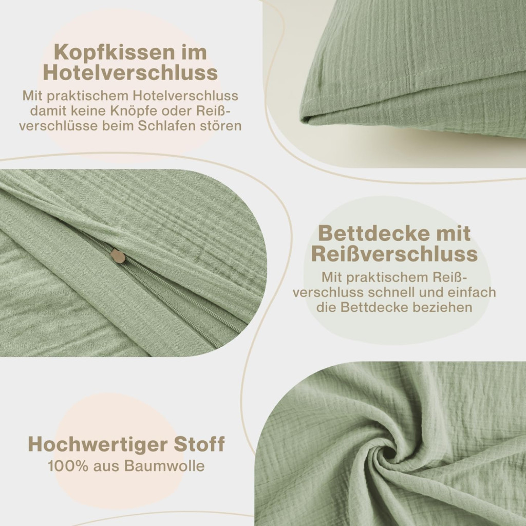 - 100% Pamut Muszlin: Prémium minőségű, természetes szövet, amely lélegzőképes és puha