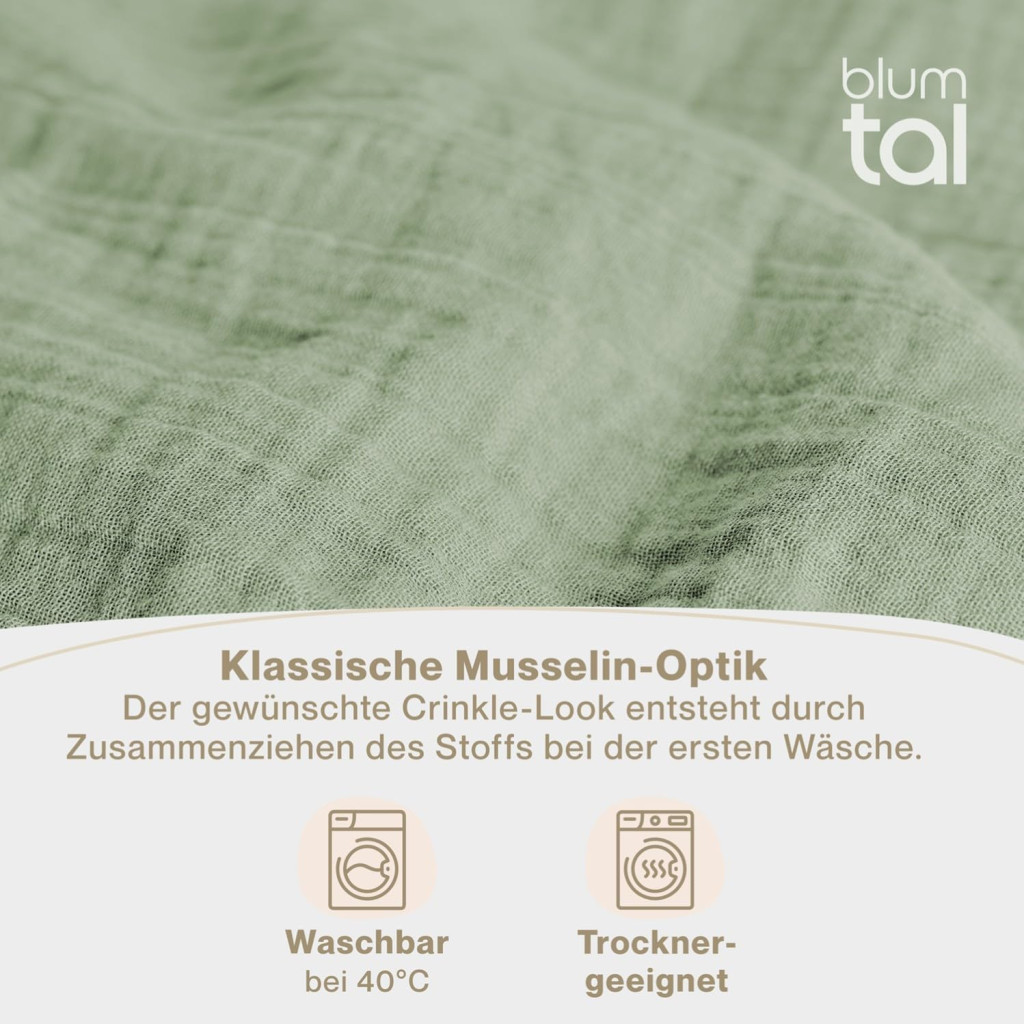 A Blumtal Muszlin Ágynemű 155x220 cm + 80x80 cm szett a tökéletes választás azok számára, akik prémium minőséget, kényelmet és biztonságot keresnek. Az Oeko-Tex tanúsítás, a 100% pamut anyag és az Európai gyártás garantálja, hogy egy olyan terméket kap, amely nemcsak kényelmes, hanem biztonságos és fenntartható is. Ideális nyári ágyneműként, de egész évben használható azok számára, akik szeretik a lélegzőképes, puha szöveteket. Válassza a Blumtal-t a jobb alvásért és a hosszú élettartamú minőségért!