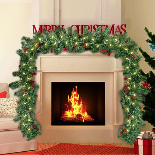 Boseago 270cm Karácsonyi Girland LED Világítással Lépcsőhöz Ajtóhoz Kandallóhoz