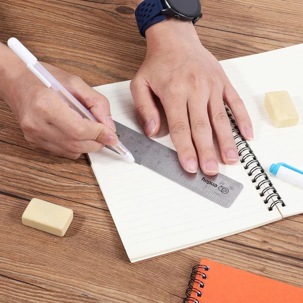 Ez a kiváló minőségű fém vonalzó szett minden mérési igényt kielégít, legyen szó iskolai használatról, műszaki rajzolásról vagy háztartási projektekről. A szett két különböző méretű vonalzót tartalmaz: egy 15 cm-es és egy 30 cm-es rozsdamentes acél vonalzót, mindkettő innovatív parafa hátlappal ellátva a maximális stabilitás érdekében.