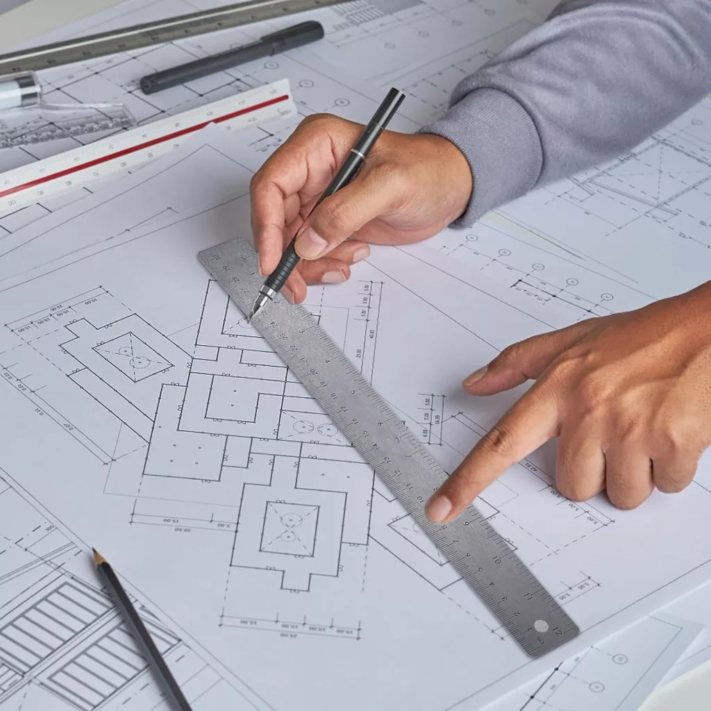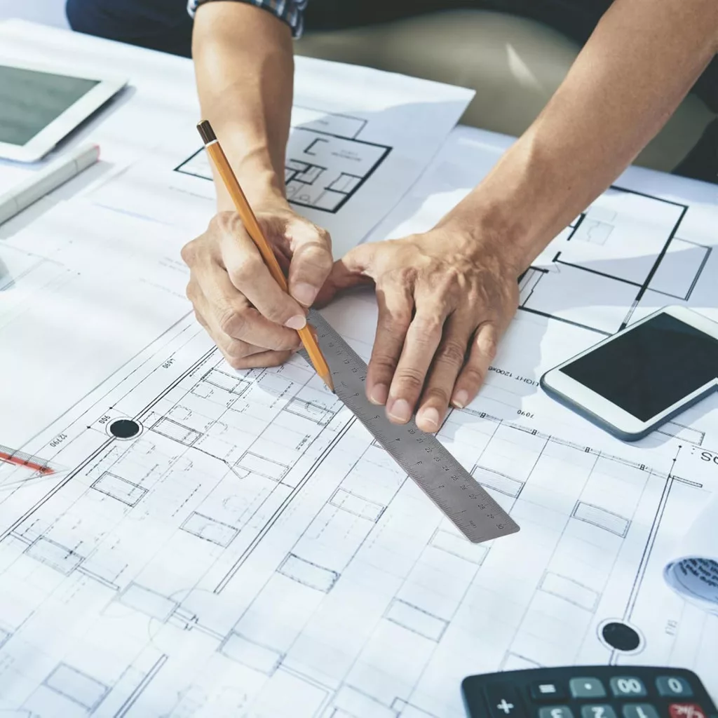 Vonalzó használata műszaki rajzoláshoz és méréshez különböző felületeken