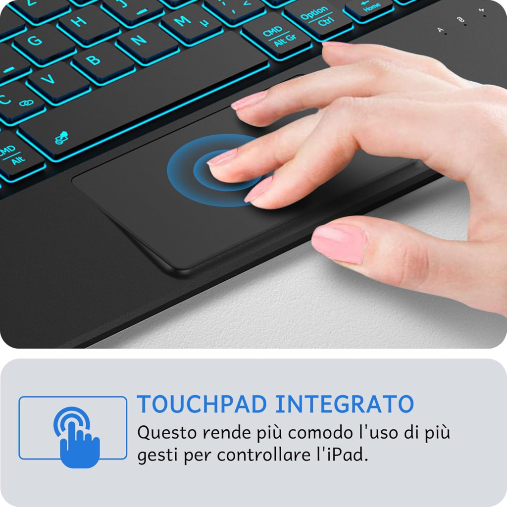 CACOE iPad Pro 11 Billentyűzet Tok - 7 Szín LED Háttérvilágítás, Érintőpad