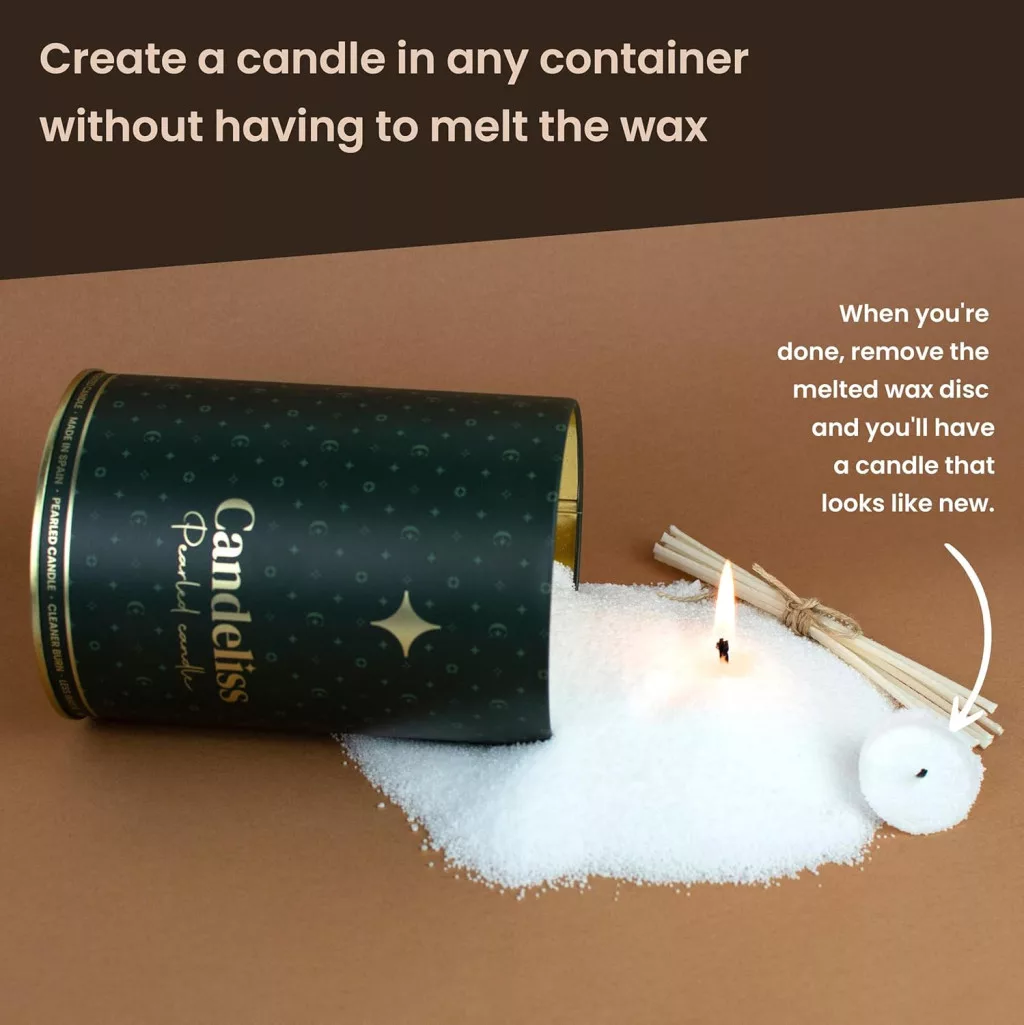 A CANDELISS gyöngy gyertya rendszer egy forradalmi megoldás a hagyományos gyertyák helyett. Ez az innovatív termék természetes, paraffinmentes waxgyöngyökből áll, amelyeket bármilyen edénybe helyezhetsz. A luxus fém dobozban kapott készlet tökéletes ajándék vagy saját használatra, és lehetővé teszi a teljes kreatív szabadságot a gyertyakészítésben.
