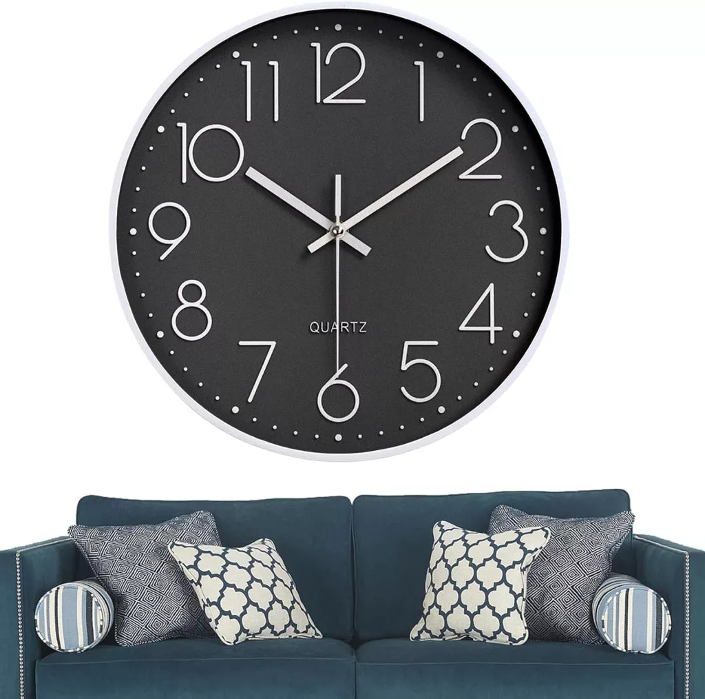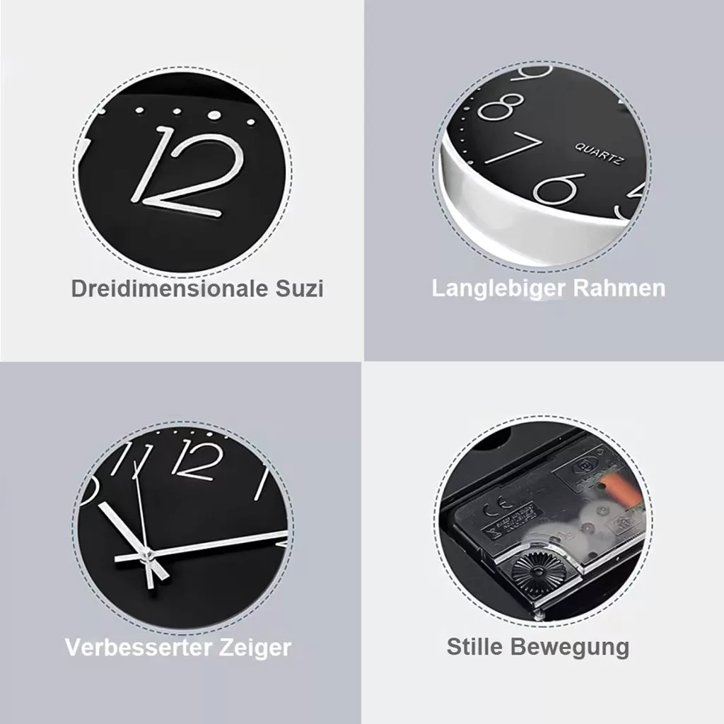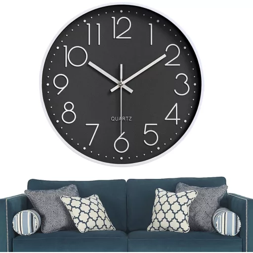 • 30 cm átmérőjű nagy számlapok: Az arab 3D számok világosan és élesen láthatók, még távolabbról is. A fehér mutatók és számok a fekete számlap ellen jól kontasztálnak, biztosítva az optimális olvashatóságot.