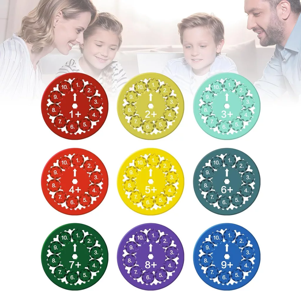 • 9 darabos készlet: Változatos matematikai feladatokkal ellátott spinnerek