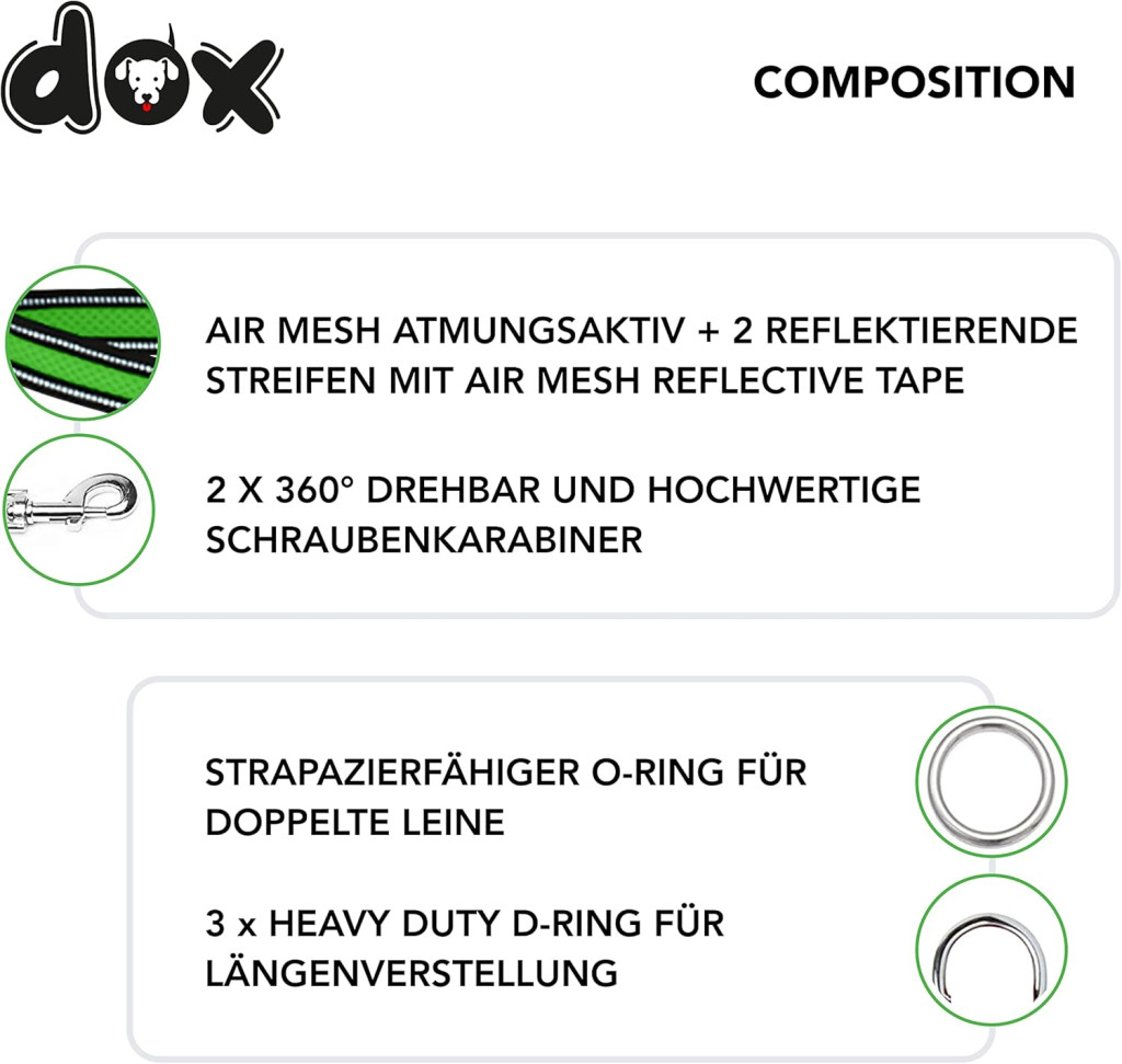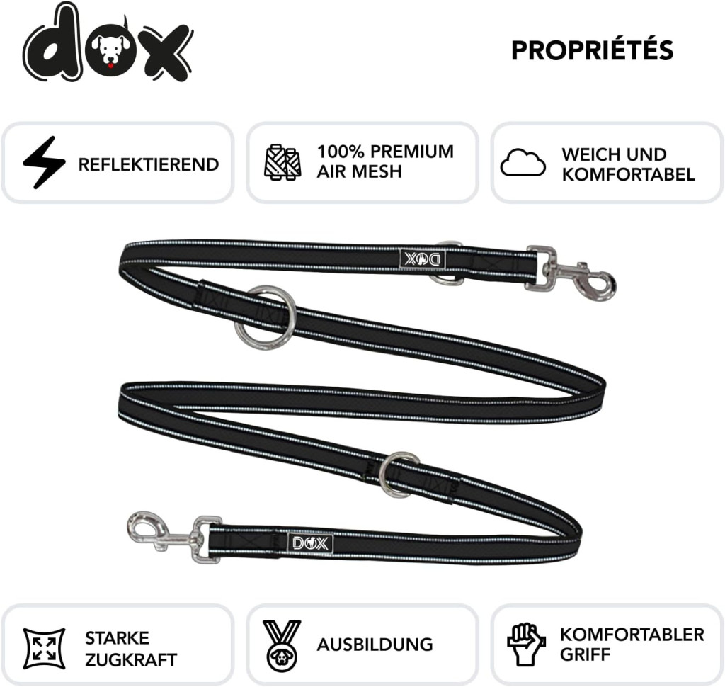 A DDOXX póráz különleges fényvisszaverő elemekkel rendelkezik, amelyek jelentősen növelik a láthatóságot az esti vagy hajnali sétákon, ezáltal fokozva a biztonságot. A nylon anyagból készült póráz ellenáll az időjárás viszontagságainak, miközben a légáteresztő háló technológia gondoskodik arról, hogy a póráz ne izzassza a kezet hosszabb séták során sem.