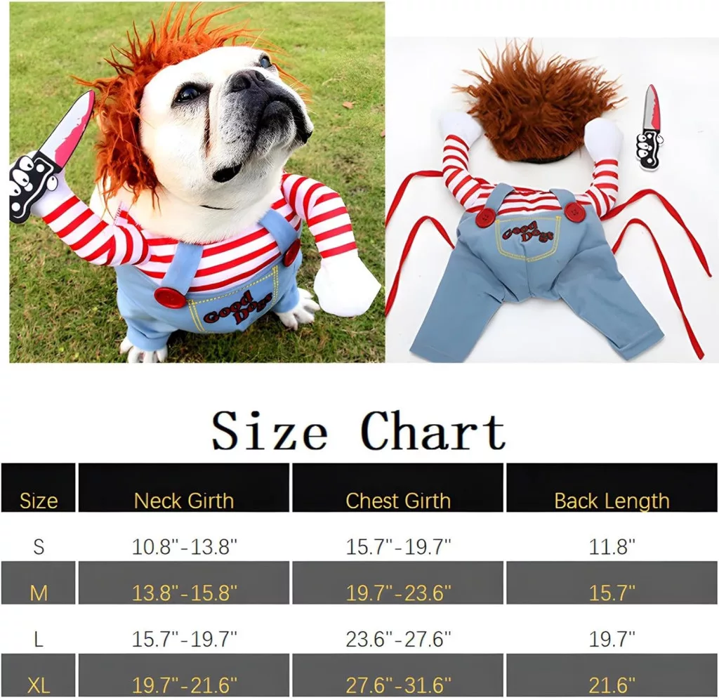 Az L-es méretű DELIFUR Kutya Ijesztő Jelmez ideális választás a következő kutyafajtáknak: