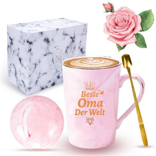 Keresel egy igazán különleges ajándékot, amivel kifejezheted a szeretetedet és megbecsülésedet a nagymamád iránt? A DIKARYA 400 ml-es rózsaszín porcelán bögre tökéletes választás lehet! Ez a gyönyörű, elegáns kávésbögre nem csupán egy mindennapi használati tárgy, hanem egy érzelmi ajándék, amely minden használatkor emlékezteti nagymamádat arra, mennyire fontos számodra. A bögre egyedi márvány mintázattal, arany kanállal és praktikus fedéllel érkezik, így minden korty kávé vagy tea különleges élménnyé válik.