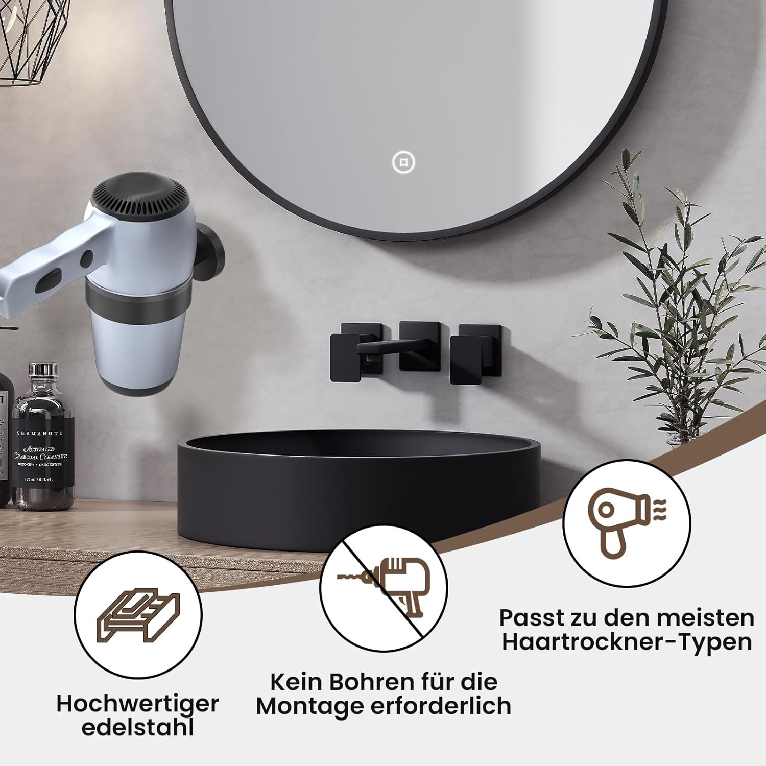 Az elegáns, modern design minden fürdőszoba stílusához illik, legyen az klasszikus vagy kortárs. A kompakt méret ideális a szűkös fürdőszobákhoz, ahol minden centiméter számít. A stabil szerkezet biztosítja, hogy hajszárítója biztonságban van, és a hőálló anyag nem ég meg a meleg levegőtől.