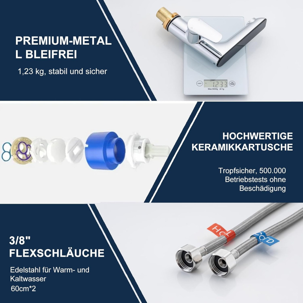 Az ólommentes cink-ötvözetből készült csaptelep biztosítja, hogy a víz mindig tiszta és egészséges marad. A kerámia szelep ezreszer tesztelt, így hosszú élettartamra számíthat. Az aerátor technológia pedig nem csak csökkenti a víz fogyasztást, hanem minimalizálja a zajt is, így csendes és kellemes a használat.