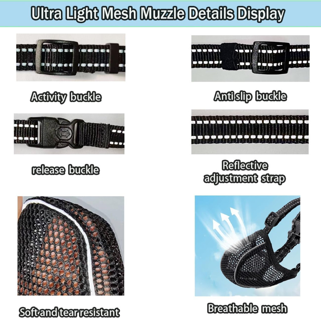 • Puha, könnyű anyag: Csak 40 gramm súlyú, magas minőségű szálhálóból készült, amely nem sérüli a kutyád orrát és arcát