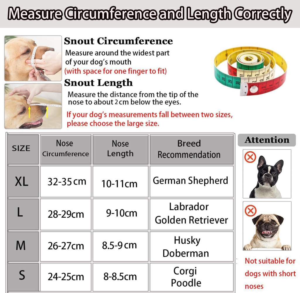 Tipp: A vásárlás előtt mérje meg kutyája orrának kerületét és hosszát. Ha bizonytalan a méretezésben, küldjön egy fényképet az ügyfélszolgálatnak, és 2-4 órán belül választ kap.