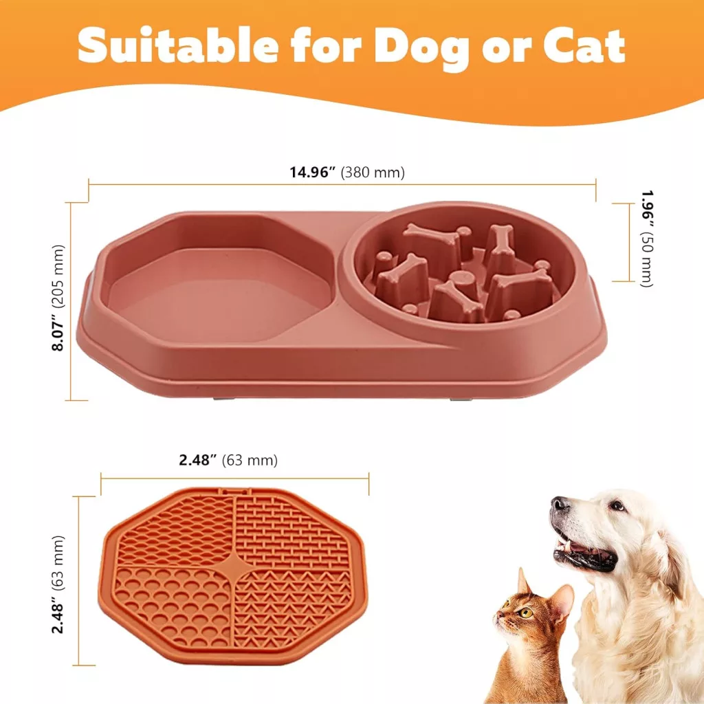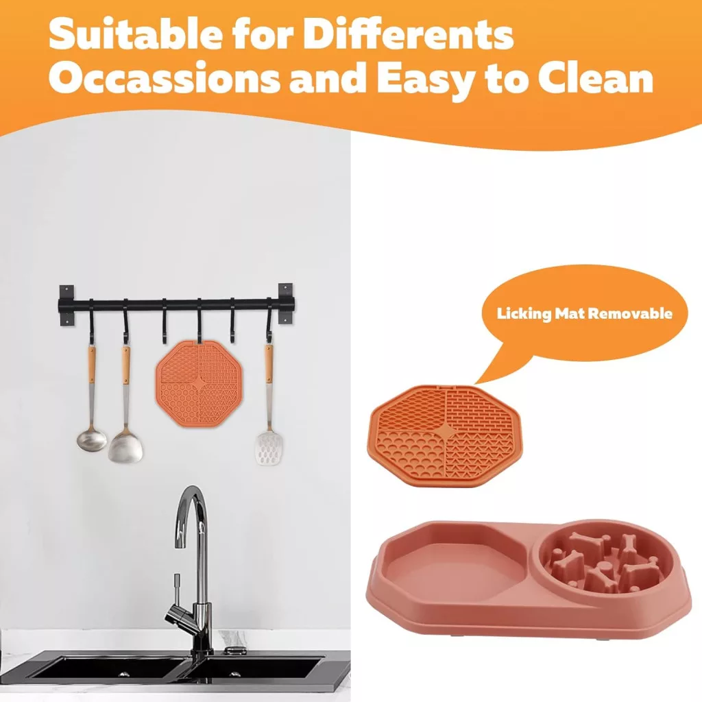 A kettős tál design lehetővé teszi, hogy több ételt vagy italt kínálj fel egyszerre, így nem kell több tálat használnod. A nyalómat eltávolítható, így könnyen tisztítható és mosogatógépben mosható, ami időt takarít meg.
