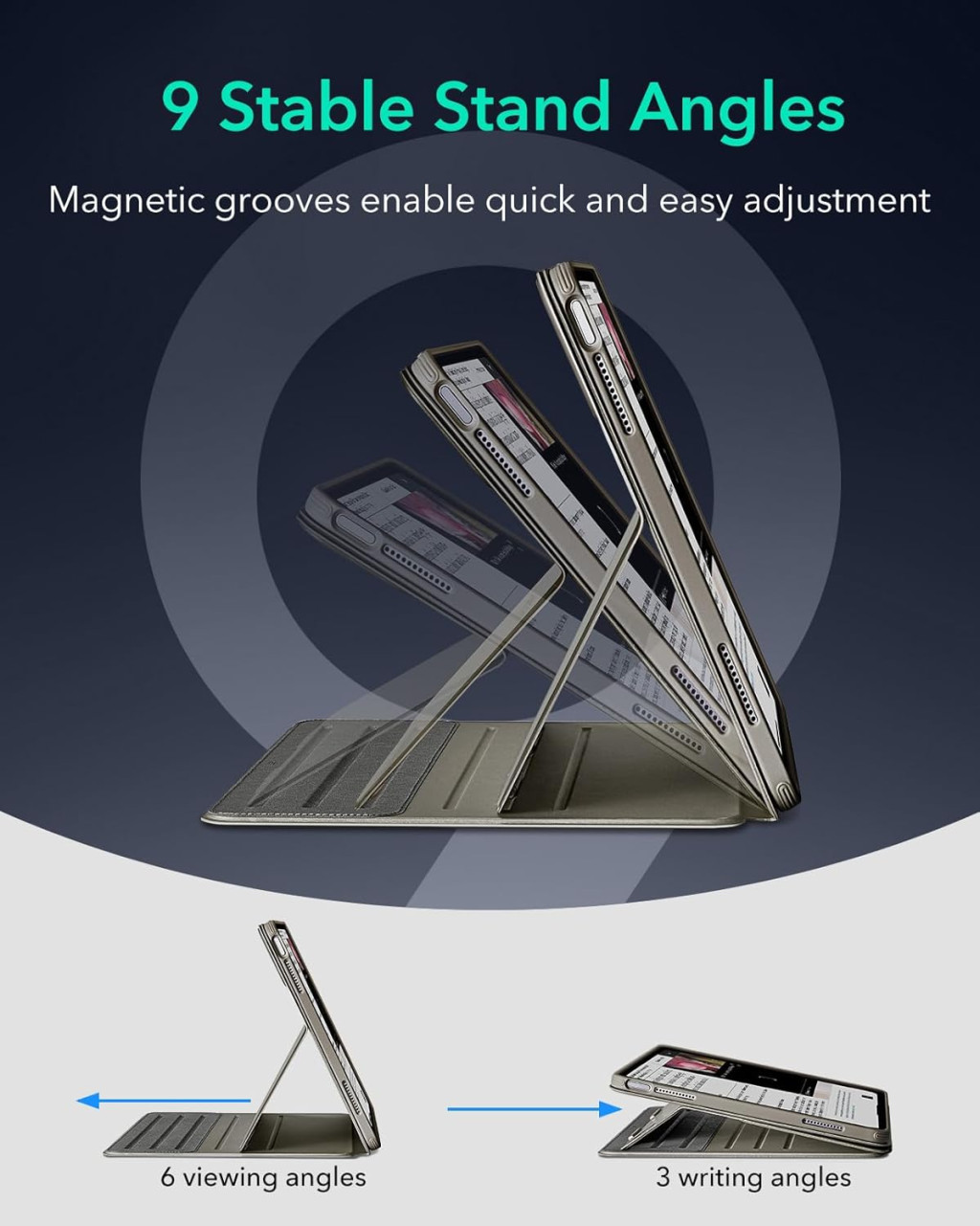 Az ESR iPad Air 13" tok forgatható mágneses borítóval és 9 állítható szöggel: