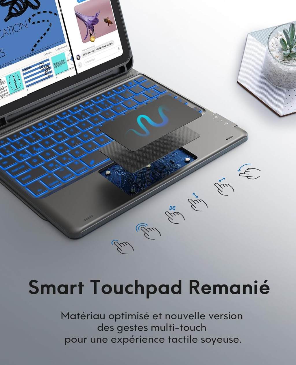 • Többpontos Trackpad: A multifunkcionális érintőpad támogatja a különféle gesztusokat, így az iPad valódi laptopként működik