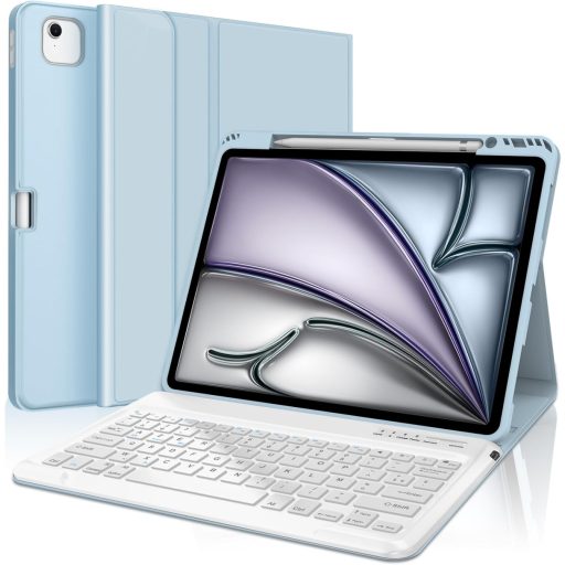 A FARYODI iPad Air 13 Zoll (M2) 2024 védőtok billentyűzettel a tökéletes választás azok számára, akik maximális védelmet és funkcionalitást keresnek iPad készülékük számára. A levehető billentyűzet, a beépített ceruza tartó és a többféle nézeti szög rugalmas használatot biztosít minden helyzetben. A prémium minőségű anyagok és a gondos kivitelezés hosszú élettartamot garantálnak, míg az elegáns világoskék szín stílusos megjelenést kölcsönöz.