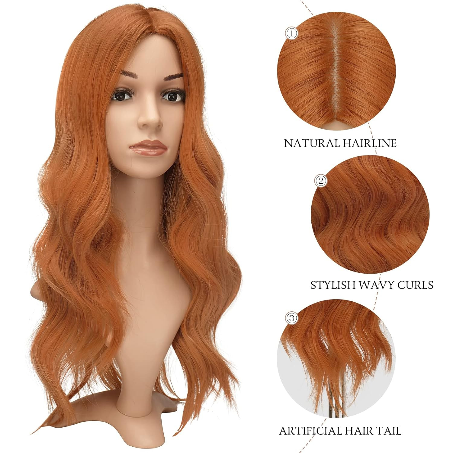 FESHFEN Hosszú Göndör Narancssárga Paróka - 60 cm Középső Választás
