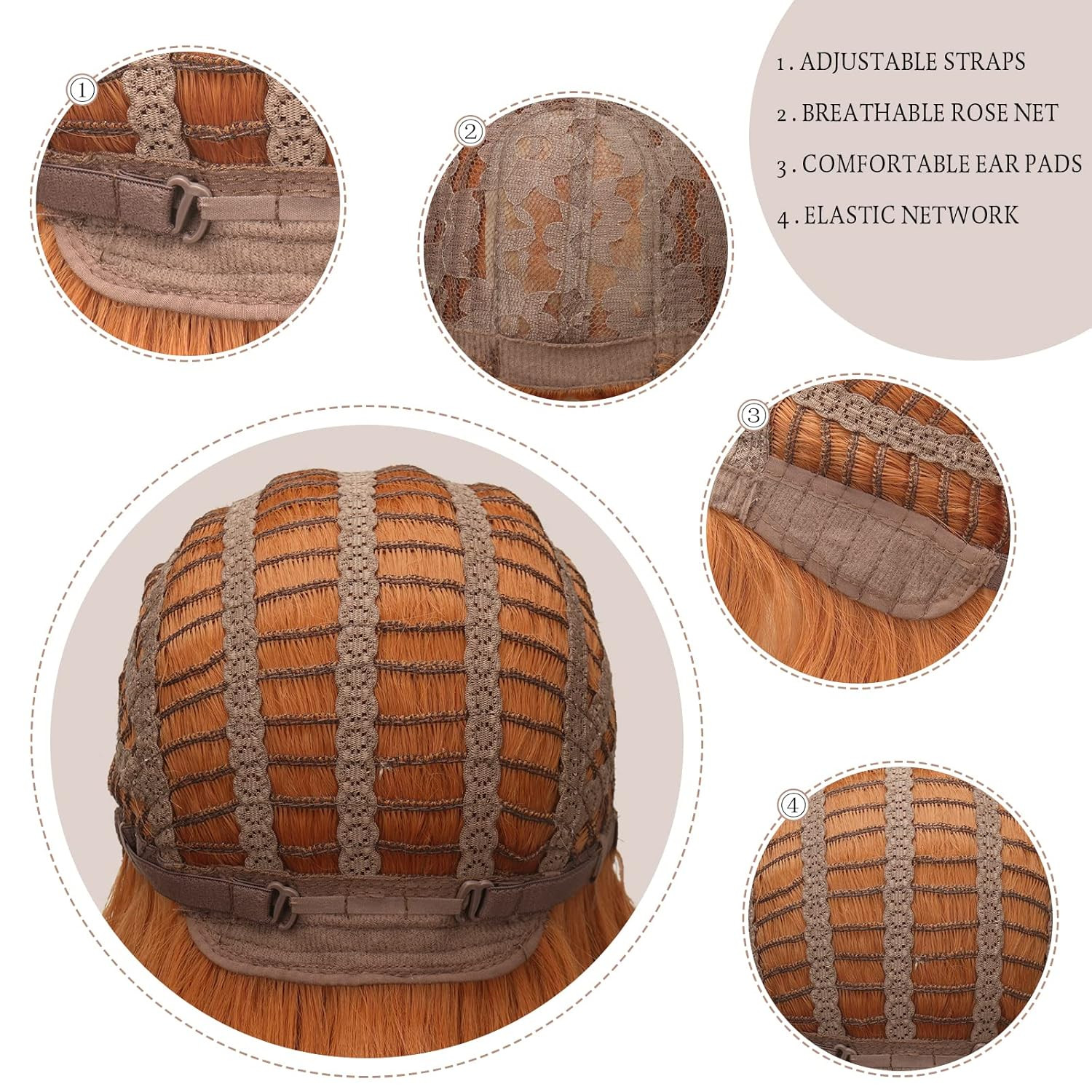 • Állítható velcro szalagok: A paróka belsejében lévő állítható szalagok lehetővé teszik a fejkerület egyéni beállítását, biztosítva a legjobb illeszkedést és támogatást