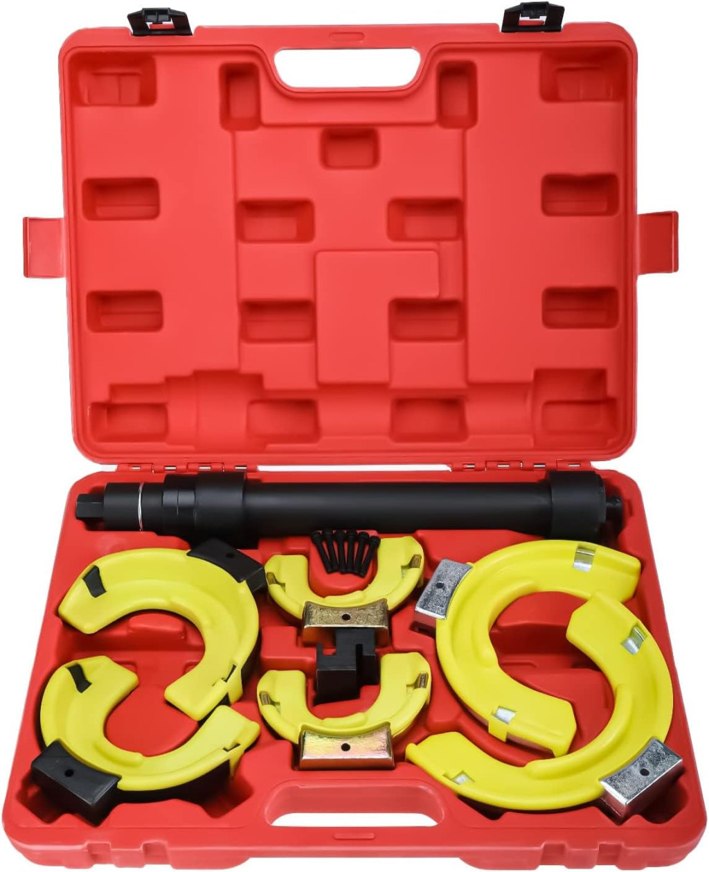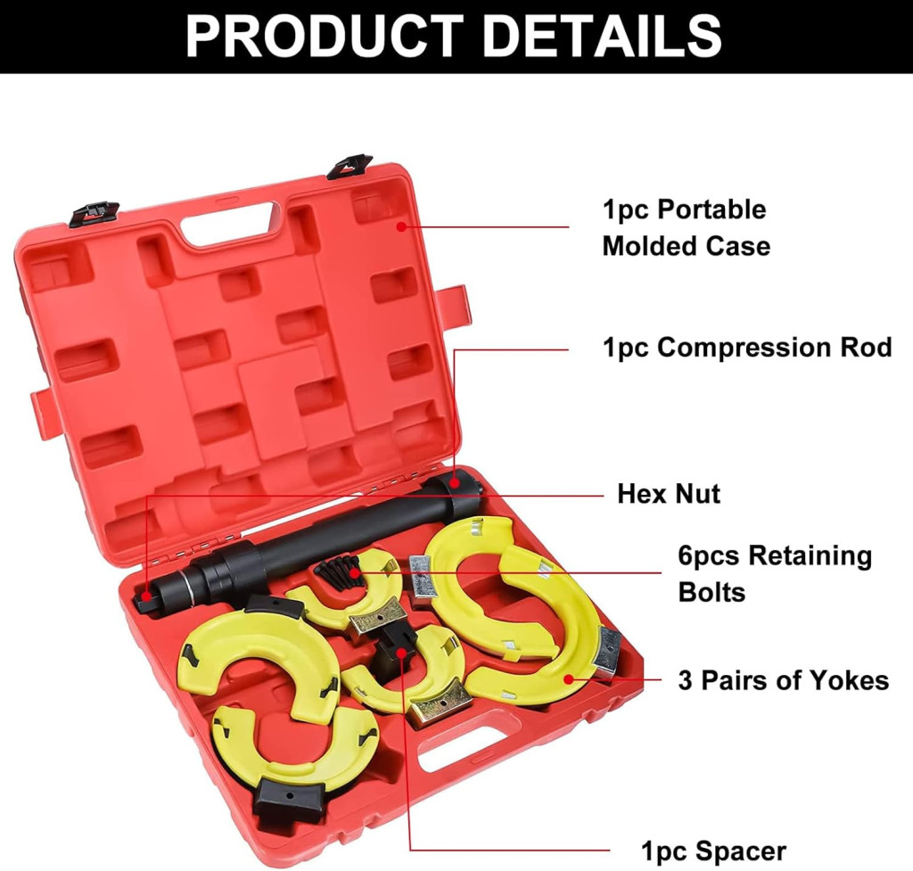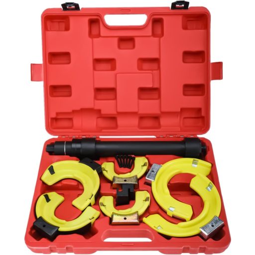 A rugófeszítő szerszám segítségével biztonságosan és hatékonyan lehet cserélni az elhasználódott rugókat, javítani a sérült támasztórudakat, vagy felújítani a felfüggesztést jobb teljesítmény és megjelenés érdekében. A készlet robusztus acélból készült, amely garantálja a hosszú élettartamot és megbízható működést még intenzív használat mellett is.