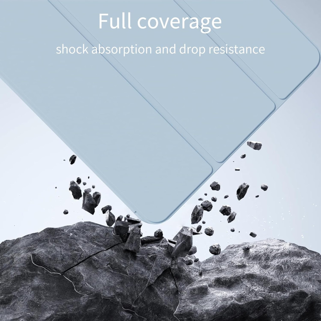 Ez a prémium minőségű iPad tok kifejezetten az iPad 11. generáció (A16, 2025) és az iPad 10. generáció (2022) számára készült. A világoskék szín elegáns megjelenést biztosít, míg a rugalmas TPU hátlap és a puha PU bőr előlap maximális védelmet nyújtanak az eszköz számára. A tok tökéletes egyensúlyt teremt a védelem és a hordozhatóság között, így ideális választás azok számára, akik szeretnék megóvni tabletjüket a mindennapi használat során.