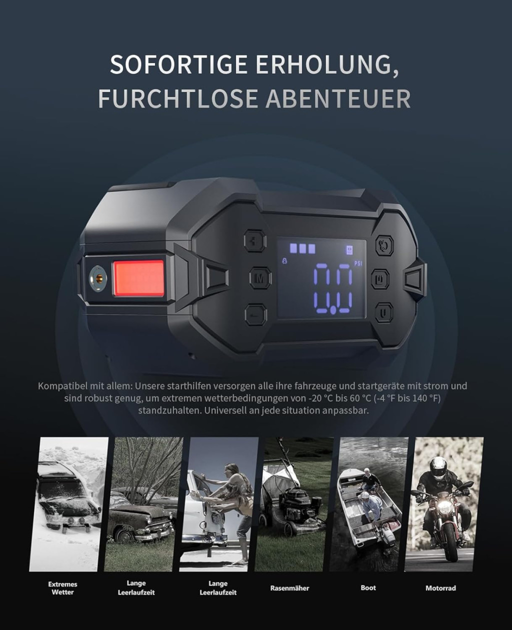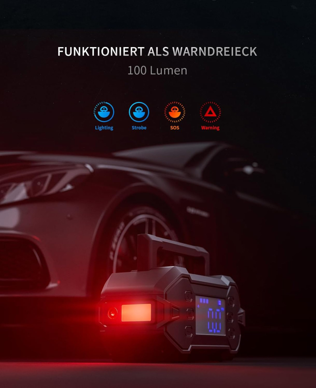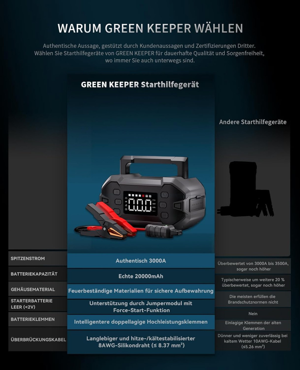 GREEN KEEPER 3000A Hordozható Indítóakkumulátor 12V Benzin Dízel Autóhoz Kompresszorral