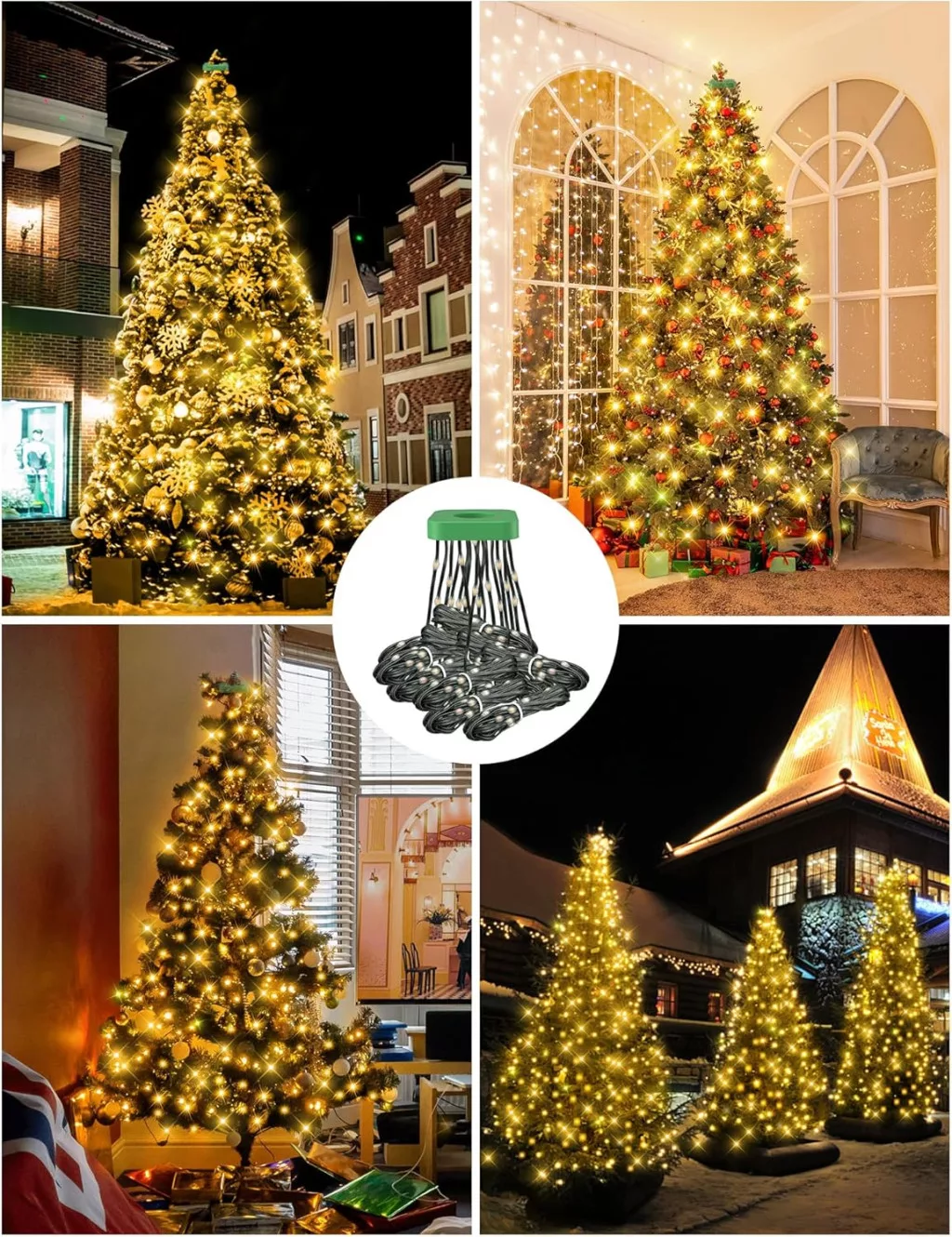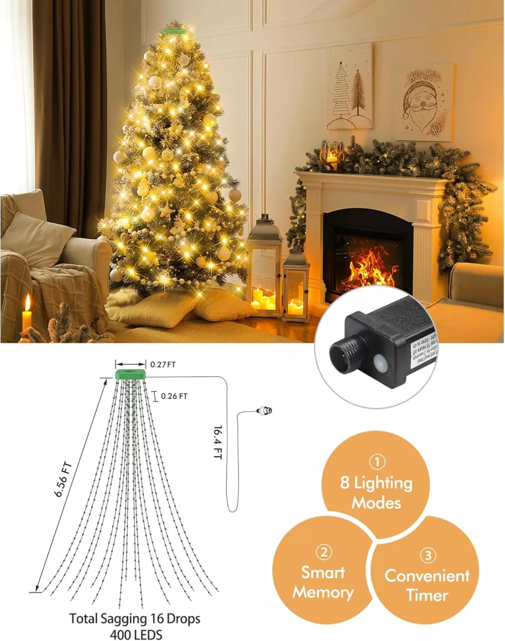 GYLEFY Karácsonyi Fényfüzér 400 LED 16 Ág 2m Vízálló Timer 8 Mód Meleg Fehér