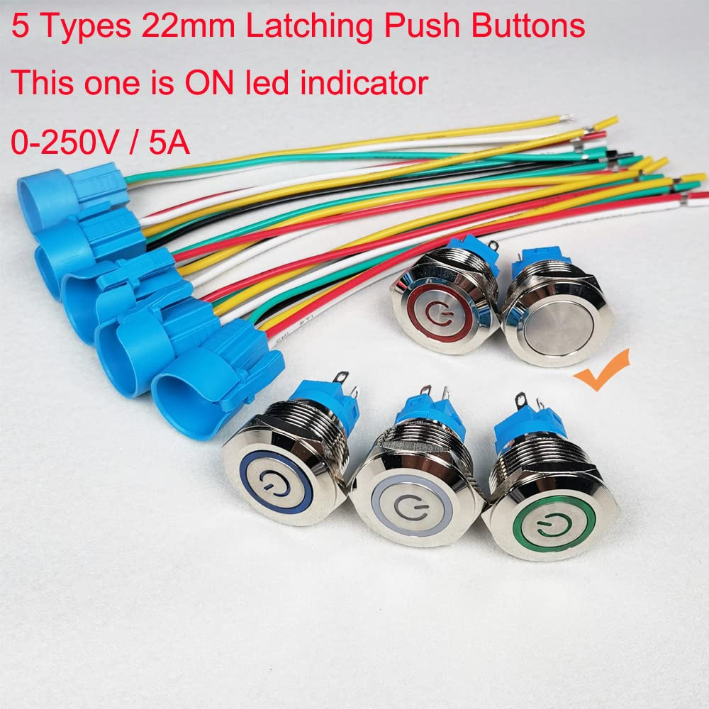 Gebildet 22mm Rozsdamentes Nyomógomb Kapcsoló 5A Vízálló Fém Ipari Nyomógomb