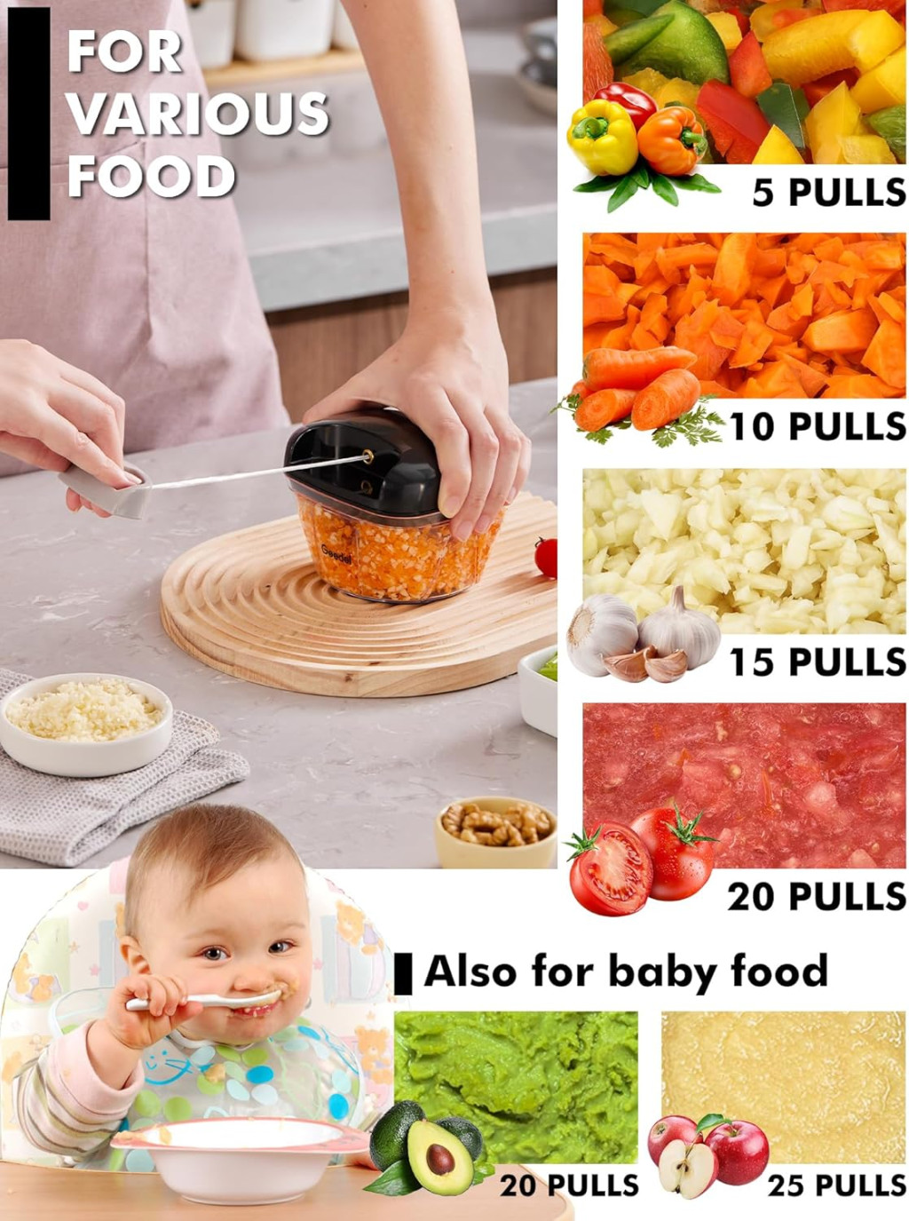Ideális ajándék családtagoknak, barátoknak vagy bárki számára, aki szereti a főzést és értékeli a praktikus konyhai megoldásokat. A gyors aprítás és a könnyű tisztítás révén ez a készülék hamarosan nélkülözhetetlen társa lesz minden konyhának! ‍