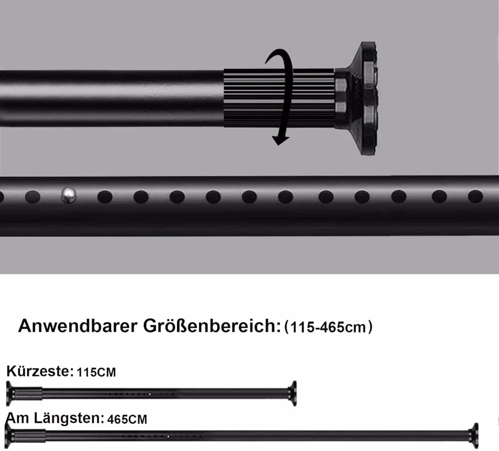 - Állítható hosszúság: 115-465 cm között, ideális különböző méretű terekhez