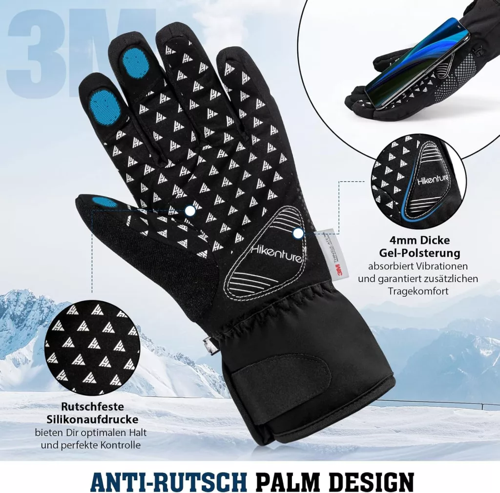 Az ambidexter tervezés mindkét kézre tökéletesen illeszkedik, és a szilikon nyomtatás a tenyéren biztosítja a biztos fogást. Az érintőképernyő-kompatibilis hüvelykujj lehetővé teszi az okostelefon kezelését anélkül, hogy ki kellene venni a kezeket a meleg kesztyűből.