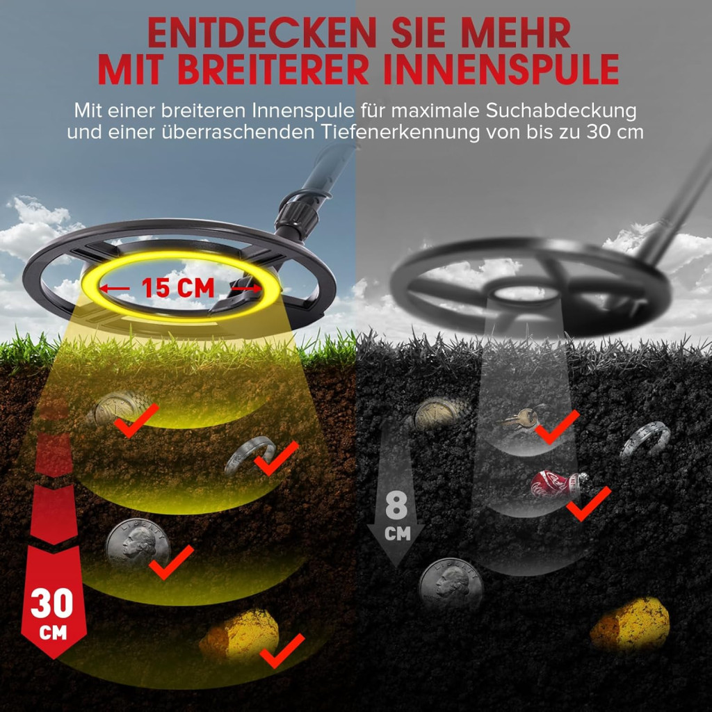• 30 cm mélységig detektál, vízálló keresőfejjel