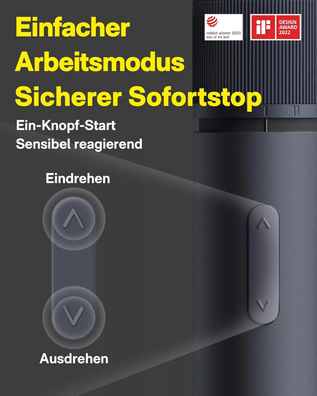 Elektromos üzemmódban 4 Nm, kézi üzemmódban 8 Nm maximális nyomaték. Ideális különböző anyagok és csavarméret kezeléséhez.