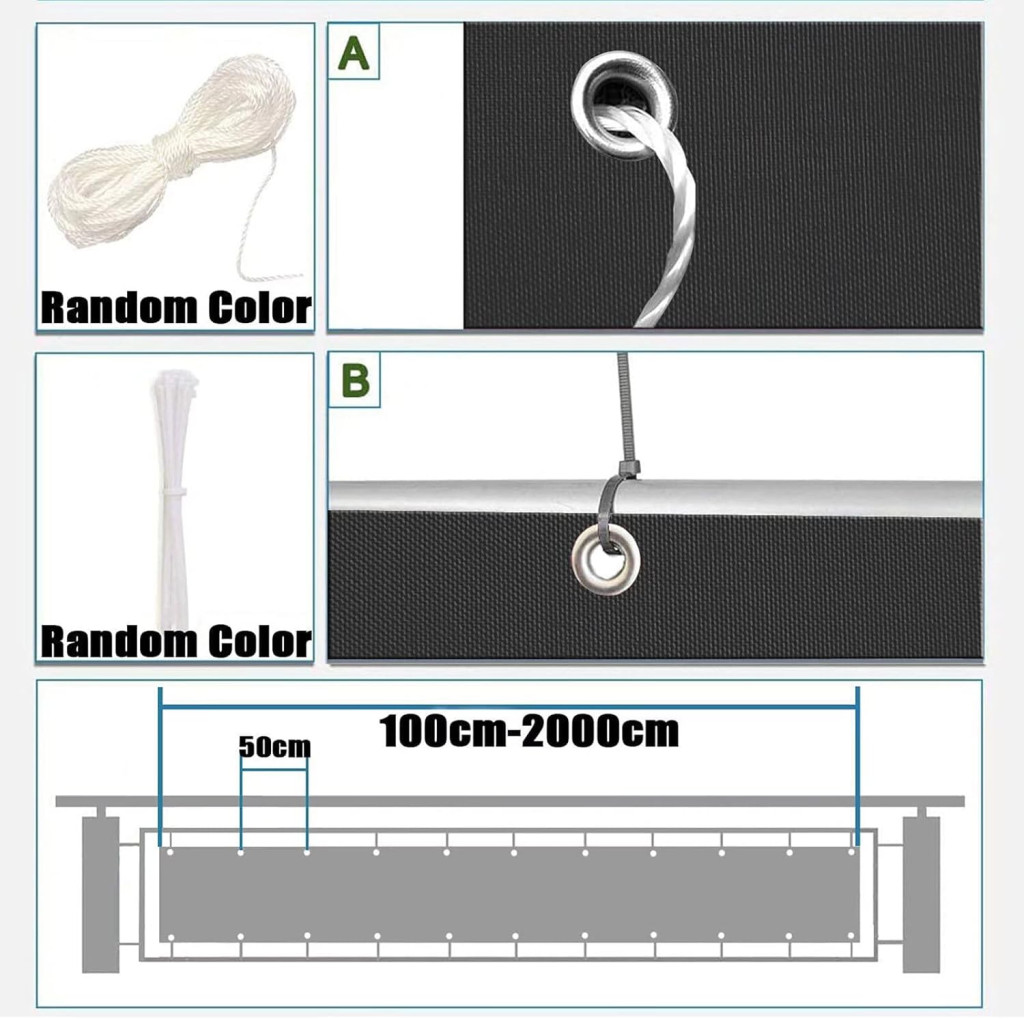 A HUAXIQUE balkon képernyő bármilyen balkonkorláthoz, kerítéshez vagy kültéri szerkezethez könnyen felszerelhető. Az ingyenes kötélzet és kábelkötözők segítségével gyorsan és egyszerűen rögzíthető. A 80 cm széles és 1000 cm hosszú méret a legtöbb balkonhoz és teraszhoz megfelelő, azonban egyedi méretekhez és lyukközökhöz (20, 30, 40 cm stb.) ingyenes testreszabást kínálunk. Egyszerűen vedd fel velünk a kapcsolatot a rendelés után, és mi elkészítjük az igényeidnek megfelelő egyedi megoldást.