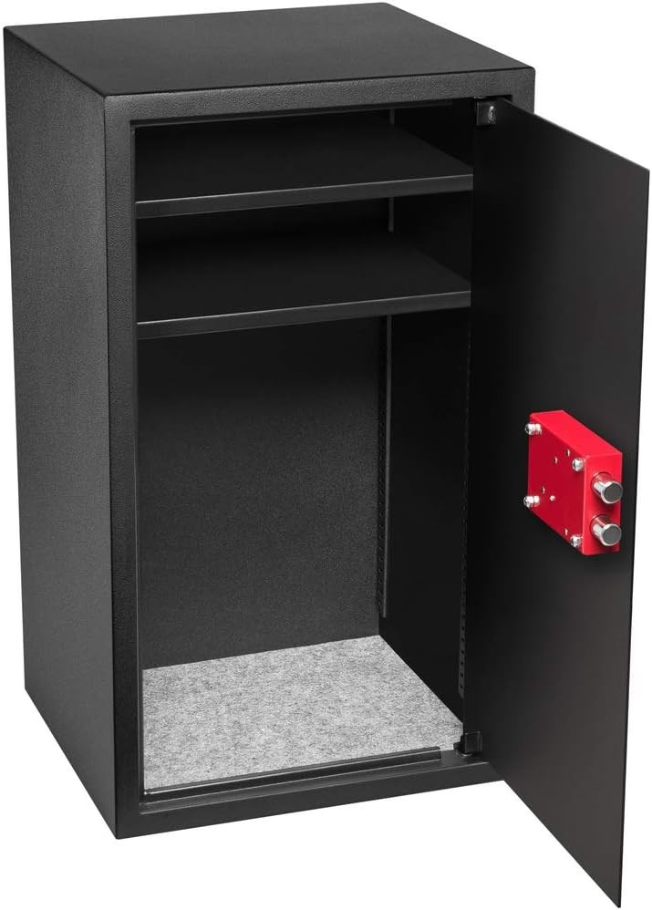 HomeSafe HV70K Széf Kulcsos Zárral, 70x40x36 cm, Nagy Méretű Acél Páncélszekrény Otthoni Értéktároláshoz, 2 Állítható Polccal, Falra Szerelh