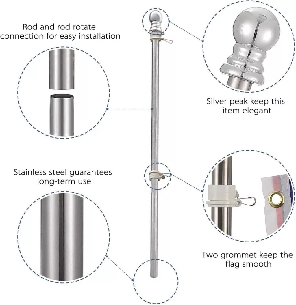 - Forgó gyűrűk: Két zászlógyűrű segítségével különböző méretű zászlókat rögzíthet, és a zászló nem csavarodott fel szél közben