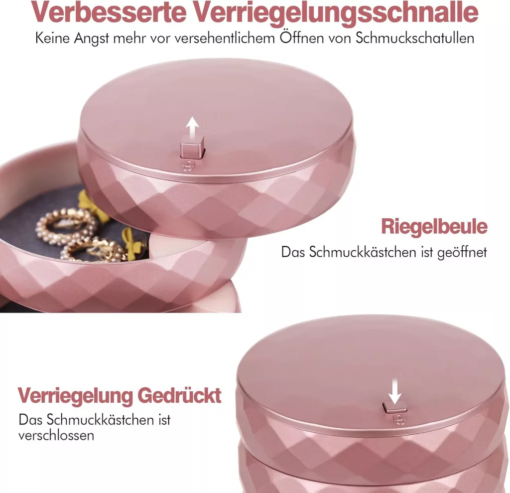 INMORVEN Forgó Ékszertartó Doboz 4 Szintes Záras Rózsaarany Női