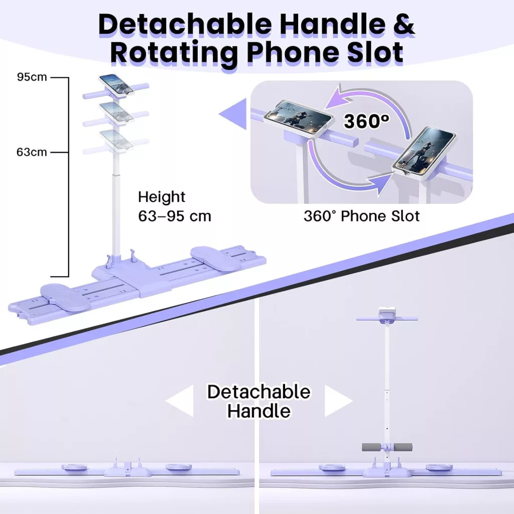 Az edzés során a motiváció kulcsfontosságú. Ezért az eszköz 360 fokos forgatható telefontartóval van felszerelve, amely közvetlenül az eltávolítható fogantyúkra szerelhető. Tájképi módban követheti a fitness videókat és tanulhat a helyes technikáról, portré módban pedig élő edzéseket követhet és szinkronban edzhet az edzerrel. A fogantyúk magassága 63-95 cm között állítható, így alkalmas minden testmagasságra.