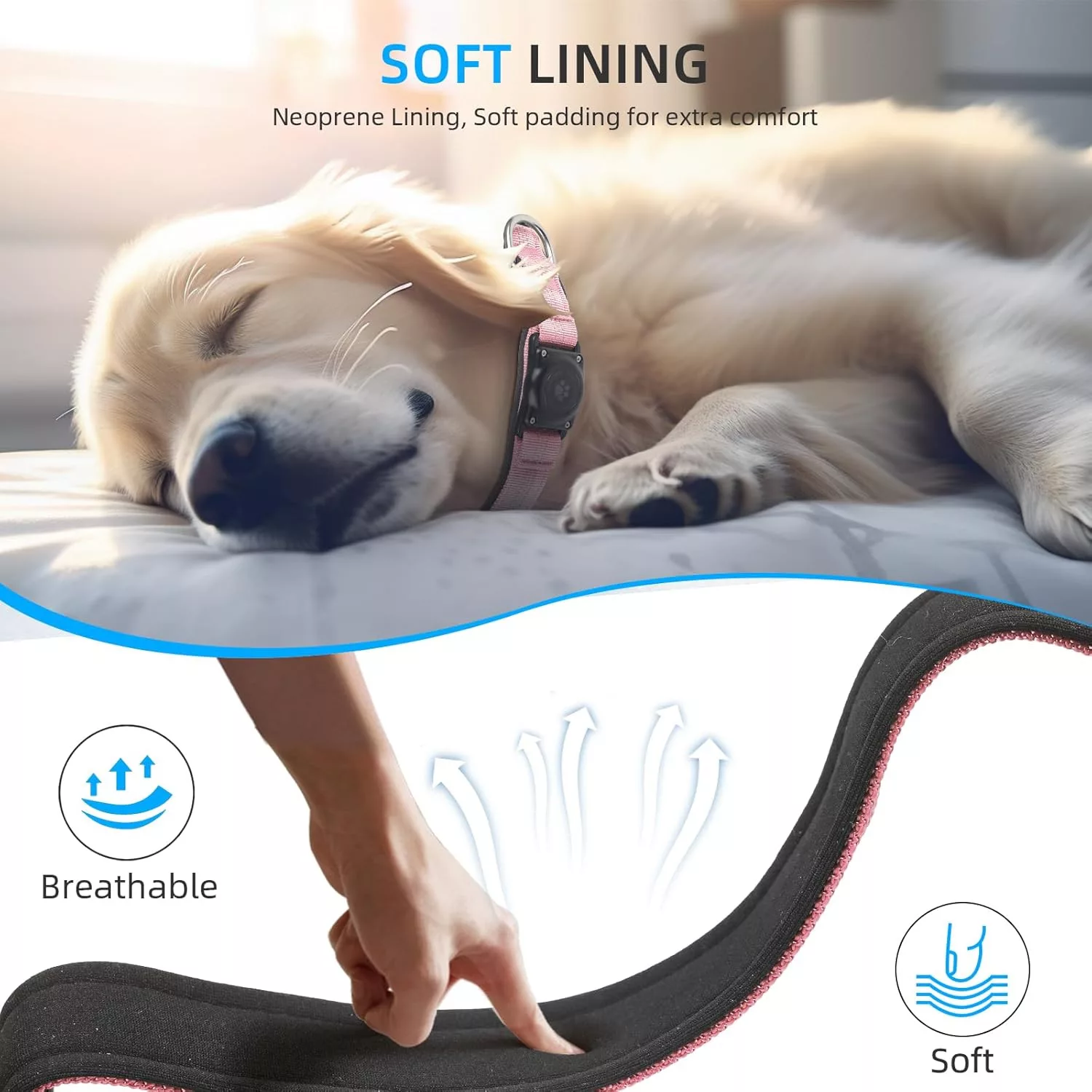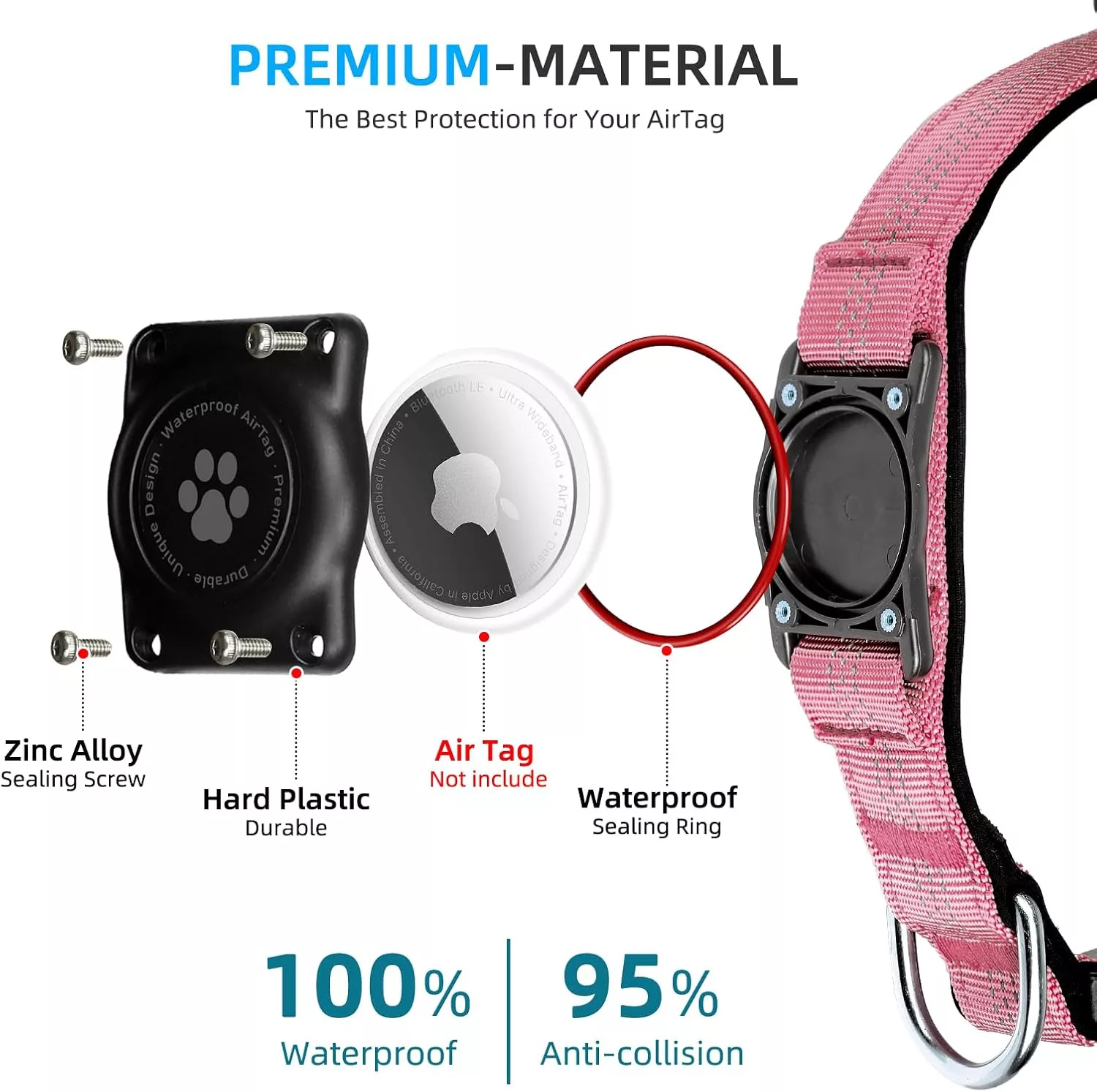 Nem kell külön tartót vásárolni – az AirTag közvetlenül a nyakörv részébe illeszkedik.