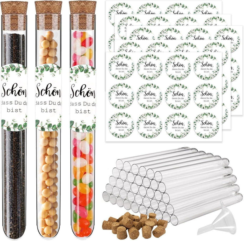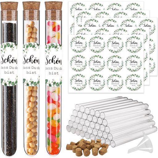 • 50 darabos szett: Minden szükséges elem egy helyen - 50 kémcső, 50 dugó és 50 "Schön dass du da bist" matrica
